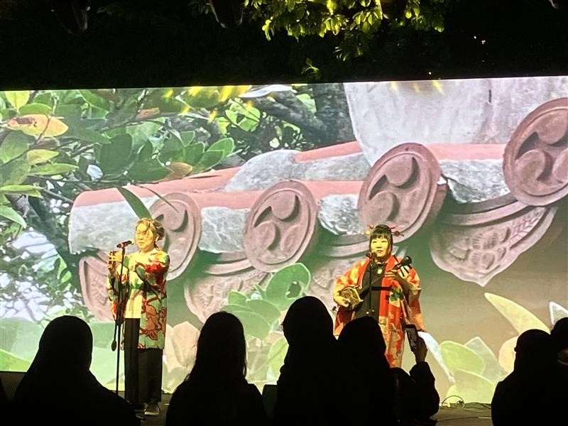 2. Ms. Yuko Tsubame, a member of "Frank Chickens," played the Okinawan string instrument Sanshin and held sessions singing Okinawa and other Japanese folk songs. In addition, Rakugo and Benshi performances by members of "Frank Chickens" were held.